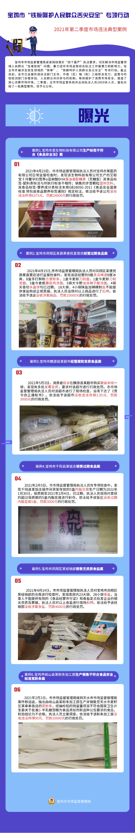 宝鸡市“铁腕呵护人民群众舌尖安全”专项行动——2021年第二季度市场违法典型案例