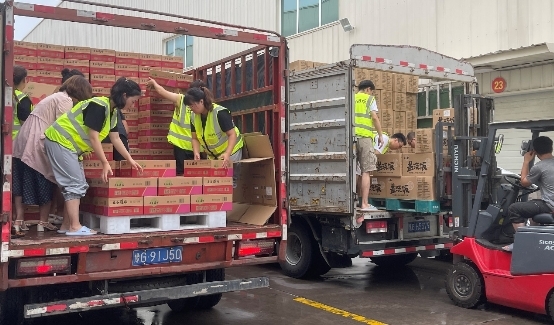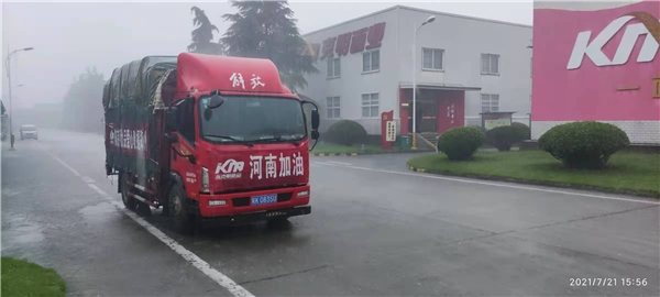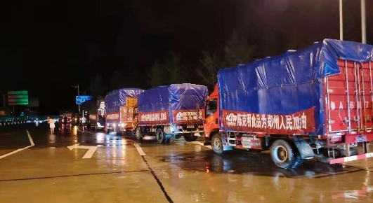 7月21日下午,同在河南的陈克明食品驻马店、新乡工厂也在经受着暴雨的冲刷,冒着大雨,七十吨挂面与两千余箱方便食品被迅速装车,送往灾区。