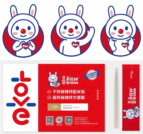 喜翻拌在过去两年对品牌形象进行了3次升级,全新卡通形象“喜兔”出现在门店装修、餐具袋、用餐垫纸和外卖包装上。萌萌的形象迅速赢得了消费者的芳心,既提升了用餐的愉悦感和舒适度,又传递了品牌时尚、轻奢的调性。