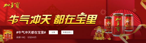 站在企业外部来看,二次创业以来,加多宝在营销上推行数字化、年轻化战略更显坚决。2021年春节,加多宝开启#牛气冲天 都在宝里#抖音挑战赛,在特殊时期聚焦在线送祝福场景,实现了社群营销的新突破。活动期间,抖音话题总播放量高达12.3亿,话题参与人数近30万,微博话题阅读量达1.9亿,讨论人次近10万,成功实现“品效合一”,展现出加多宝品牌数字化营销的创新能力。