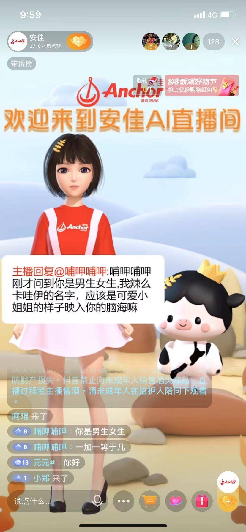 8月1日,安佳在抖音开启了一场不同以往的直播,最大的变化是主播换了一副新“面孔”。“安佳”和“安安”,作为安佳品牌两个AI虚拟主播全新上线,成了品牌抖音直播间的“主角”。安佳新晋虚拟主播除了能够完整准确的介绍直播产品、店铺促销与品牌信息外,还可以同步播放产品应用的视频、展示产品场景、讲述品牌文化和展现产品溯源等信息,此外还能与观众进行互动,回答消费者关于产品、促销、品牌的问题乃至天气、数学题与抽奖等真人主播的日常工作。