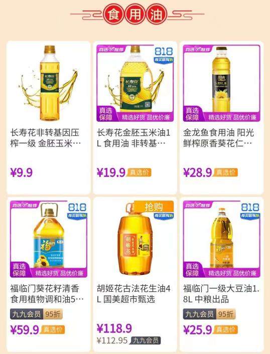 在日常饮食中,食用油扮演着不可或缺的角色,但如今市场上食用油乱象的新闻频频爆出,“翻车”的厂商不计其数,这可愁坏了网友们,纷纷表示不知道该怎么选。好在“真快乐”APP前来“救场”,为大家精挑细选了一大批安全放心的食用油。例如,在818大促期间,“真快乐”APP上的金龙鱼阳光鲜榨原香葵花仁油就人气颇高,这款油甄选欧洲当季葵仁,从源头保证新鲜,并且保留了原香,味道更好,助你轻松烹饪出美味可口的大餐。另外,“真快乐”APP上的长寿花金胚玉米油、福临门葵花籽清香食用油、胡姬花古法花生油等都营养丰富,最佳的囤油时机到了,会过日子的小伙伴已经下单了一年的量啦!