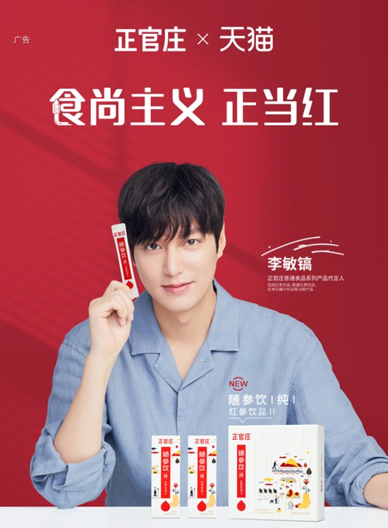 “食尚主义”风潮的发起者的正官庄,是创立于1899年的韩国百年品牌,一直秉承着为人类健康事业发展奉献的匠心精神,与时俱进地将最新的科研成果融合在产品生产之中;同时融入品牌对消费者生活方式的洞察,提取和凝练出更加适合现代人健康生活的产品。正官庄还携手实力演员李敏镐,向不断壮大的年轻养生一族传达时下火热的食尚主义,号召年轻人们重视自身生活状态。
