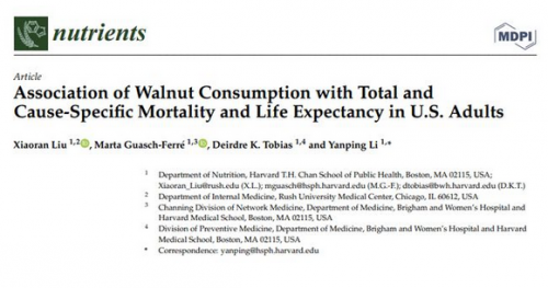 在近期,哈佛大学在《营养》“Nutrients”期刊上发表的一份新的研究证明,经常食用核桃与延长寿命以及降低心血管疾病死亡风险之间存在联系。每周食用5份以上核桃(一份28g),可能对降低死亡率和延长寿命有最大的好处。