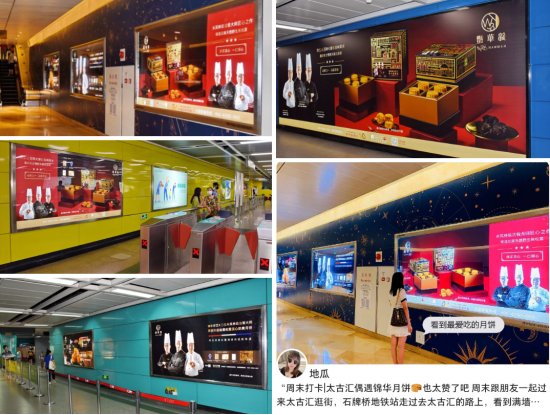 石牌桥地铁站全站锦华主题广告投放,中秋主题长廊采用星际的设计,整体以宇宙蓝的色调打造,结合太阳、月亮、星座等星体元素,搭配镭射金的视觉冲击,共同渲染出神秘而珍贵的浪漫星河长廊,引众多博主前来打卡,获1,000,000+曝光。
