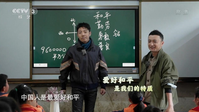 巧妙的是,撒贝宁和尼格买提的第一站,便是选在了为民小学,开启了他们短暂且欢乐的支教时刻。一时间,二人组合化身思想品德老师,从贵州城市开讲,说到人的品格,又延伸至科学梦想,甚至现场还搞起了幽默音乐,着实生动的给孩子们上了一堂有趣的课。