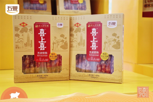 喜上喜黑猪腊肠则是精选慢养黑猪鲜肉,加以传统广式酒酿工艺,72小时慢烘,口味醇厚,鲜香不腻。