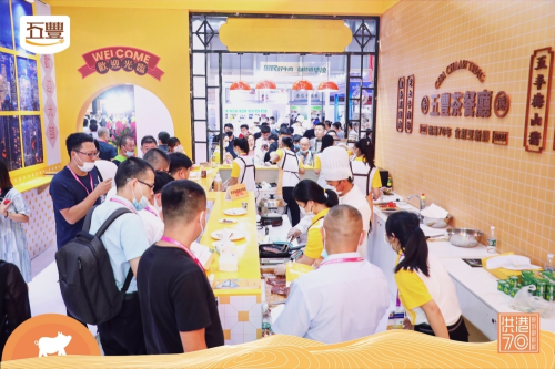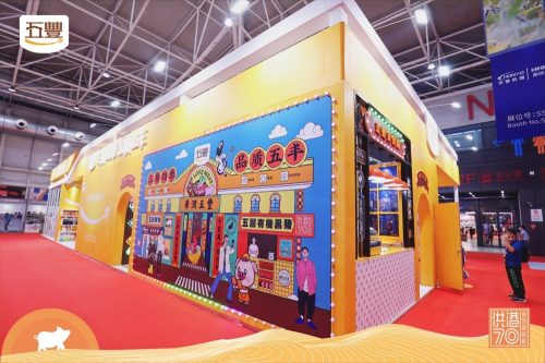 左侧专门打造了“五丰茶餐厅”,以五丰鲜肉产品为原材料的正宗港味、怀旧港式视觉风格,五丰肉食供港70年的历史文化历历在目。
