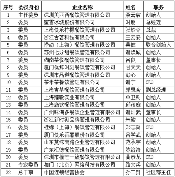 今年,中国连锁经营协会成立“新茶饮委员会”,委员包含喜茶、奈雪的茶、蜜雪冰城等21家企业。