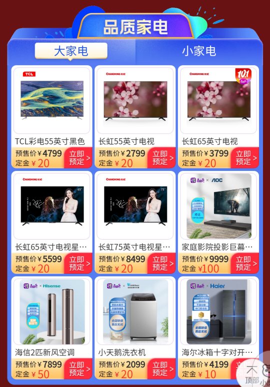 国庆黄金周将至,正是新房装修、旧房翻新的好时机,自然免不了“买买买”各种家居家电产品。这个时候,一定要上“真快乐”预售板块“品质家电”专区看看。“真快乐”精选各大品牌的爆款家电,消费者不必再费时费力挑选,预付定金还可再享折上折优惠,全方位提升购物体验。以这款王牌家电TCL彩电为例,它采用QLED量子点智屏,不仅色彩更纯净,还能10年不褪色。趁着小长假,为新家添置家电或者改造旧家,这款电视再合适不过。现在付20定金可低200元,入手正是时候,好用、实惠、真划算,买它!