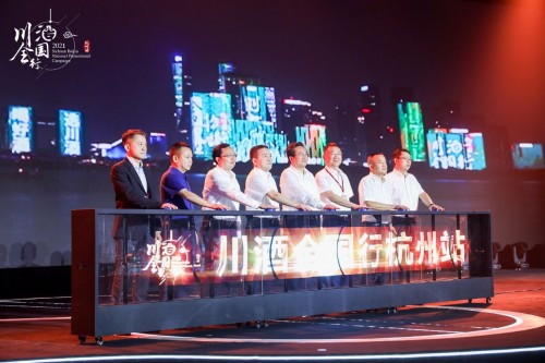 四川省委副书记邓小刚,浙江省人民政府副省长、浙江省公安厅厅长王成国,五粮液集团有限公司总经理、五粮液股份有限公司董事长曾从钦,泸州老窖股份有限公司党委书记、董事长刘淼,剑南春集团有限公司副总经理田锋,四川郎酒股份有限公司总经理付饶,水井坊股份有限公司首席执行官及副董事长朱镇豪,舍得酒业董事长张树平,共同启动了“点亮钱塘江”仪式,把“川酒全国行”活动推向了高潮。