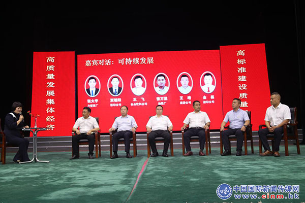 第三个环节是“嘉宾对话”, 来自南街村集团的6位嘉宾围绕十四五规划、发展集体经济,结合本单位实际,畅谈可持续发展。方便面厂厂长张太宇着重阐述了“匠心做产品,迈向新时代”,具体谈了方便面厂能走到今天,到底坚持了什么?作为龙头企业,面对高质量发展,企业有什么战略规划?彩印公司经理贾朝阳着重阐述了“创新塑印技术,打造塑印典范”,具体介绍了彩印公司作为华北最大的彩印包装企业,有哪些重要客户?是如何赢得客户的?在质量创新发展上有什么好方法?食品饮料公司经理王飞着重阐述了“转型促发展,整合开新篇”,具体谈了食品饲料公司与啤酒公司合并后,在转型创新、整合发展的认识和方向上的好做法。油墨厂厂长张万里着重阐述了“不和大厂比条件,质量强村比贡献”,具体谈了油墨厂如何与大厂比质量、比发展。旅游公司经理王培着重阐述了“唱响红色旋律,成就爱国教育基地”,具体谈了旅游公司作为南街村的服务窗口,是如何把南街村的红色文化推广出去,进一步树好南街村对外形象的。胶印公司质检科科长金磊着重阐述了“坚持绿色发展,争做行业标杆”,具体介绍了胶印公司针对现阶段印刷包装行业最为关注的“绿色印刷推动高质量发展”,从哪些方面入手去做的。