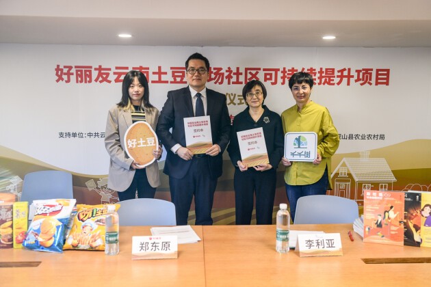 (2021年10月12日,云南文山)2021年10月起,好丽友食品有限公司携手北京乐平公益基金会发起云南土豆农场社区可持续提升项目。项目先期将选择云南文山砚山县江那镇的一处土豆农场社区为试点,落地“农业技术赋能“与”儿童教育改善”并进的综合举措。通过农业基础设施改进、数字化生产工具服务等方式,帮助农场提升土豆生产效率,以点带面助力乡村振兴产业兴旺的进程;同时通过对项目所在地乡镇幼儿园进行绘本捐赠,提升社区教育水平,促进儿童早期教育发展。