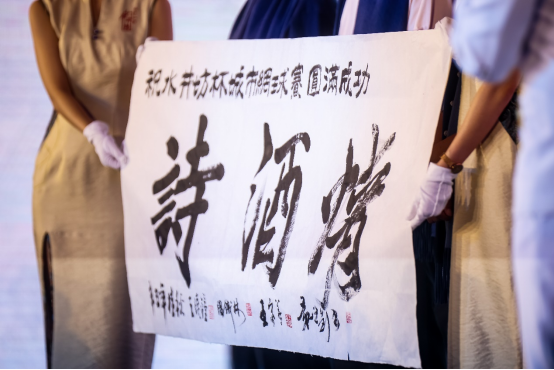10月3日晚,诗酒年华主题晚会隆重登场,李白、杜甫、唐伯虎纷纷“穿越”出席。10个城市代表队轮番登场,现场表演诗朗诵,或颂扬赛事或称赞美酒,一场极具文化特色的饕餮盛宴让所有来宾感受到了水井坊和成都的盛情。晚宴前,与会嘉宾纷纷驻足欣赏书画厅的书画佳作。晚会结束,精心编辑的《诗酒韵》一书则作为成都手信被来宾带回了家。