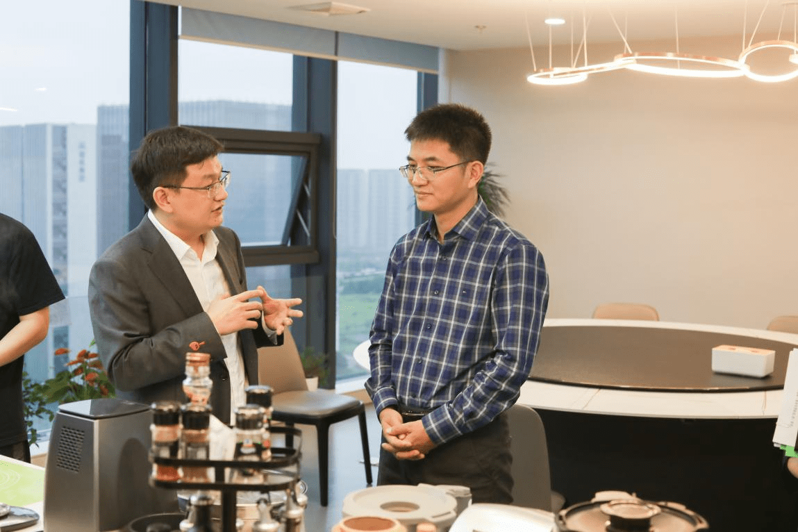 方志华董事长陪同陈健副区长一行参观了田螺云厨的内容研究院,并近距离观看了田螺云厨AI烹饪机器人等一系列科研产品。田螺云厨董事长方说到:“‘民以食为天’是我们经常提到的一句话,但如何利用科技手段、数字化手段来让烹饪这件事变得简单高效,是我们企业一直在解决的问题。对此,我们用十年的时间来研发并设计了这款AI烹饪机器人,就是要让老百姓,甚至不会做饭的年轻人也能体验到烹饪数字化的便利性。如:烹饪火候、健康膳食等饮食烹饪问题的解决,更是让下厨这件事变得简单有趣。”