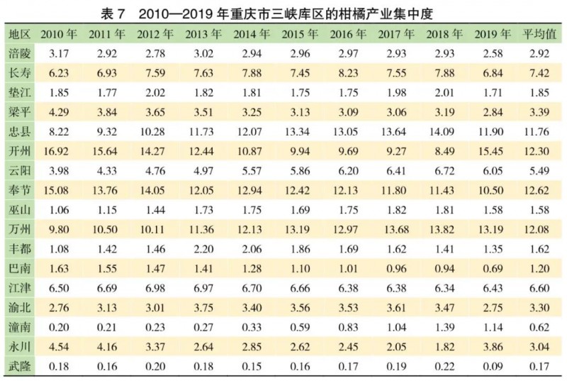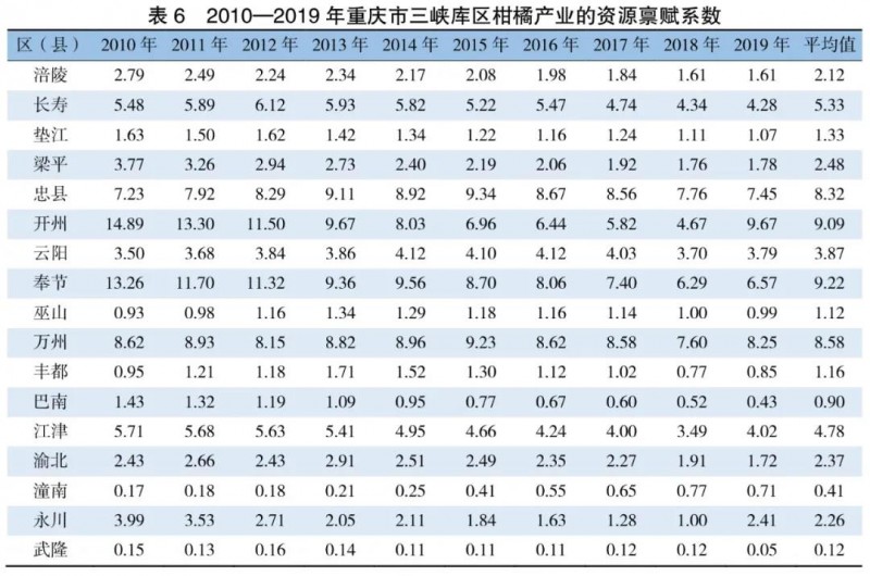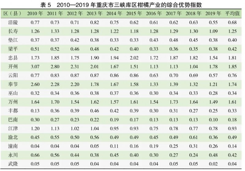 重庆市三峡库区柑橘产业各区(县)比较优势分析
