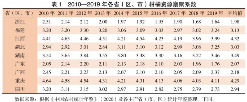 基于此,本文对重庆市及三峡库区17个区(县)2010—2019年柑橘产业的比较优势现状进行测算与分析,并将重庆市柑橘产业与我国广东、江西、福建等8个柑橘主产省(区、市)进行比较优势分析,分析总结制约重庆市柑橘产业发展的主要因素,探讨如何在充分利用现有比较优势的基础上挖掘后发优势,创新重庆市柑橘产业发展的政策优势,以推动重庆市柑橘产业结构优化升级,实现重庆市柑橘产业振兴。