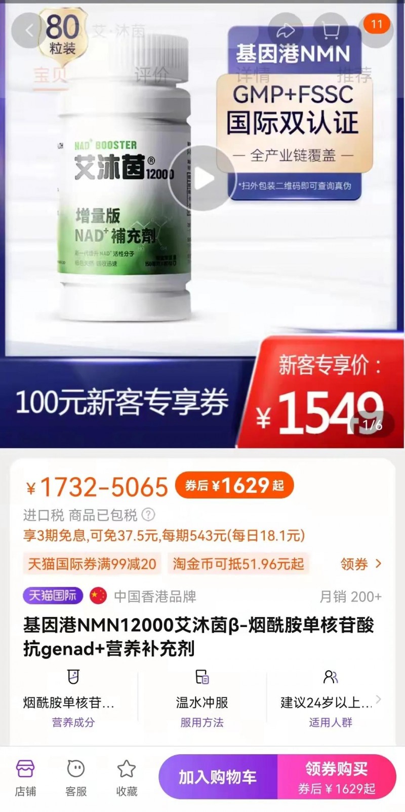 当事人在某网上商城旗舰店对其销售的“NMN 基因港艾沐茵nmn9000B 烟酰胺单核苷酸”“艾沐茵尊享礼盒套装”和“NMN3000 抗衰老臻能青春版”等三款产品,在没有科学和真实性依据的情况下,宣称“改善肝脏代谢,保护大脑和神经,逆转血管老化,调节免疫系统,保护心脏,提高精力与耐力”等,构成虚假广告,广告费用为11716元。