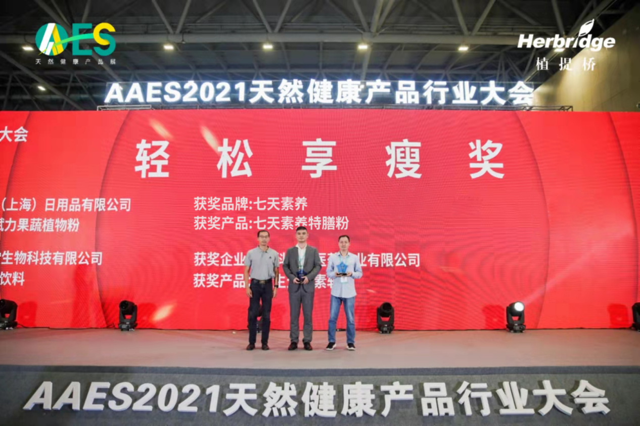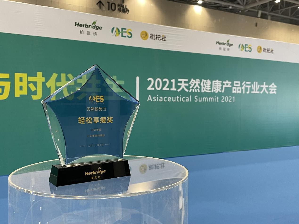 七天素养特膳粉荣获AAES2021天然新势力“轻松享瘦奖”
