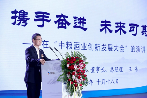 在本次大会的主题演讲《携手奋进,未来可期》中,王浩回顾了中粮酒业2021年1-9月的业绩成果,他表示,“十四五”时期是中粮酒业向“百亿综合性酒企”进军的战略关键期,面临着时代赋予的新挑战、新机遇。王浩还着重提出,指出了要坚持落实“品质为本”“文化赋能”“开放共赢”的三大战略理念,从满足消费升级大趋势和综合感官体验提升的角度出发,着力塑造消费者最喜爱的极致产品、领导品牌、领军企业。同时,他提出要通过“坚持品牌引领、强化创新驱动、深化厂商共建、完善产能布局”四大战略举措,推进战略理念的落地和战略目标的达成。通过对上述战略定位的坚持,对战略理念、战略举措的落地执行,中粮酒业将迈上高质量发展的快车道。