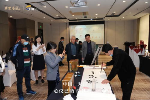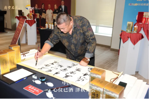 在鼎丰名匠美酒的佐兴下,马先生、徐先生、陈先生三位书法大家蘸墨挥毫、行云流水间写下“赞江山”等精彩墨宝,让大家一饱眼福。
