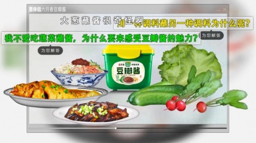 为了更贴近年轻人圈层,以他们乐于接受的方式普及“酱文化”并产生良好互动,作为“中国酱”的一员,葱伴侣跨界「局部⽓候调查组」,在线上推出一支视频「大葱蘸酱如何纵横北方2000年」。