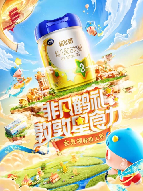 此次飞鹤与敦煌博物馆联合设计出“飞天宝宝-哼哼大王”形象,将传承多年的“飞天”元素融入产品当中,守护每一个中国宝宝想要遨游宇宙想象的童真和初心,也让奶粉产品在行业中刮起一阵新国潮。而与敦煌民族传统文化结合的星飞帆产品,也已经在国内引领口碑多年。星飞帆是国内首支含仿生母乳成分的婴幼儿配方奶粉,自2010年诞生以来,在国内销量持续破纪录,成为国内奶粉行业销量第一的大单品。