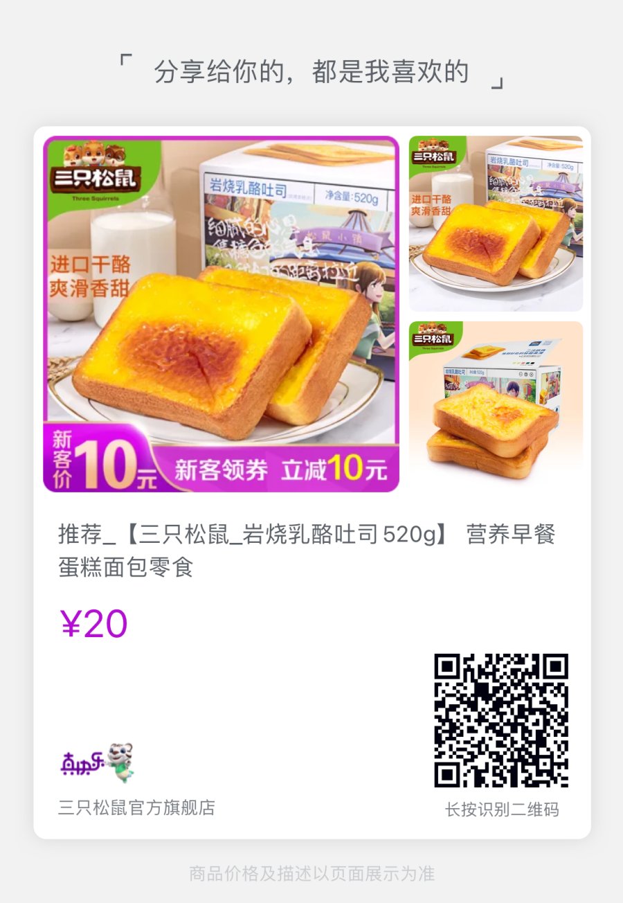 大家在逢年过节的礼品中,总能看到三只松鼠这一国民零食品牌的身影,感觉上到60岁下到6岁的小孩都吃过他们家的食品。“真快乐”真选首秀直播为大家带来了一款三只松鼠岩烧乳酪吐司,它吃起来软软糯糯的,无论是把它当早餐或者休息时间补充能量,都是不错的选择哦。