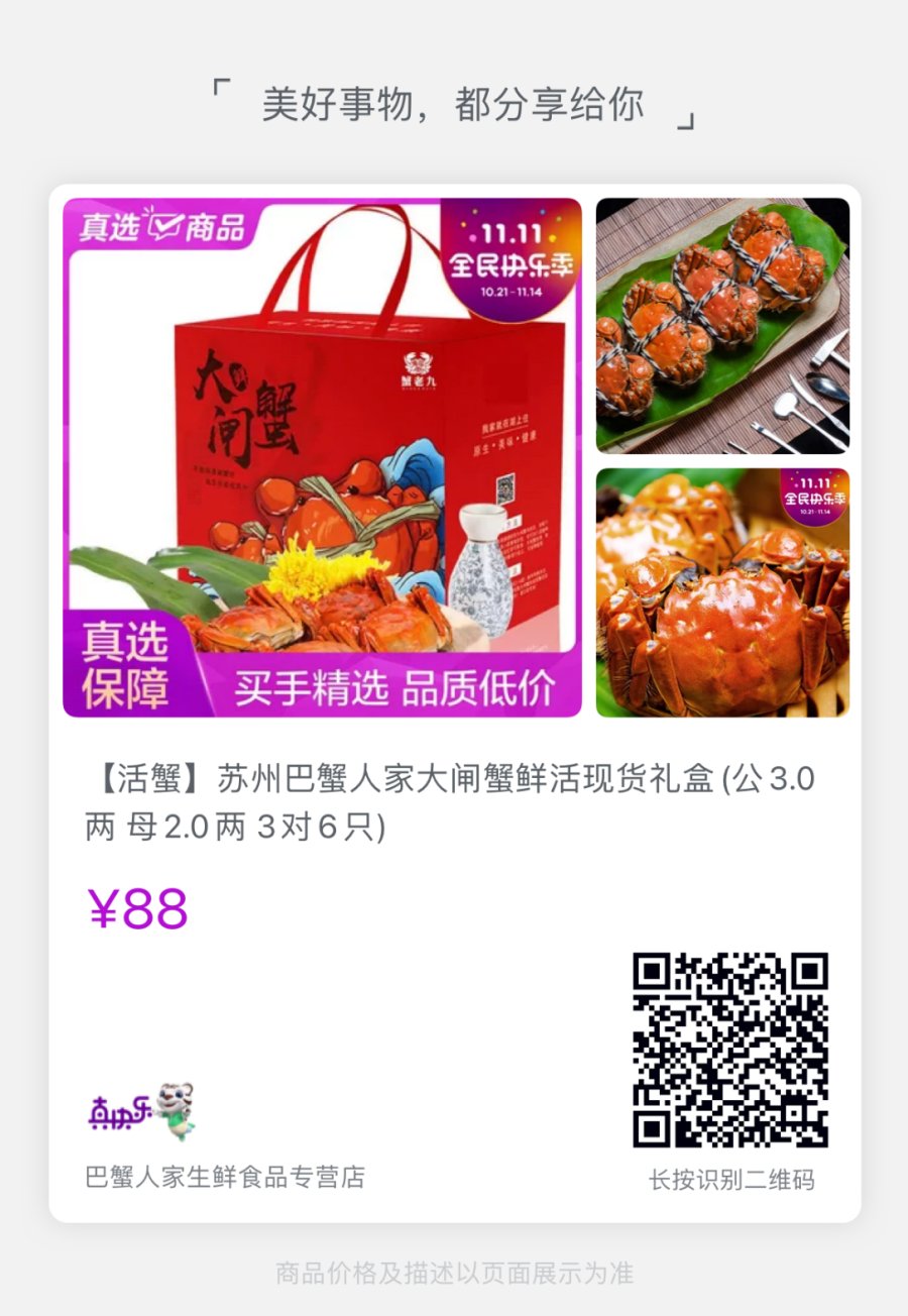 对于很多爱螃蟹的人来说,如果秋天不吃上几只螃蟹,总觉得这个秋天过得有遗憾。来来来,膏腴黄美的大闸蟹快到碗里来。“真快乐”真选首秀直播就为“吃货”朋友们带来了苏州巴蟹人家大闸蟹。6只装,原价160元,真选首秀尝鲜价低至88元,解馋的时刻到了,赶紧冲!