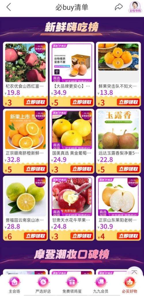 “真快乐”APP“真选商品”频道新鲜嗨吃榜,众多水果生鲜惊喜入围,值得一淘,尤其是苹果、脐橙这类保存周期相对较长的水果,可以大量囤。例如原价22.8元的杞农优食山西红富士苹果和原价16.8元的鲜果突击队不知火丑橘,现在入手都可以享3元优惠券。原价37.8元的正宗赣南脐橙,现在只要32.8元即可带回家。