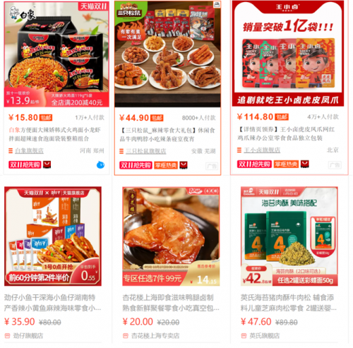 对于爱吃辣的人来说,今年的双十一格外的“火辣”!打开淘宝搜索“辣味食品”,满眼的红火和折扣。王小卤的虎皮凤爪网红鸡爪辣、谭八爷的麻辣冷吃牛肉、白象食品的大辣娇韩式火鸡拌面、小龙虾拌面、三只松鼠的麻辣零食大礼包......各种各样的辣味美食更是令人食欲大增。