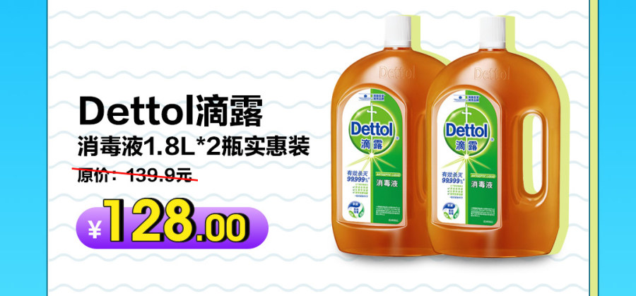 在大家都提倡做好个人防护的特殊时期,Dettol滴露消毒液1.8L2瓶实惠装也必须安排起来,让细菌无处遁形,帮你营造一个足够卫生、倍感安心的氛围,“严选之夜”直播间低至128元的价格也相当诱人。