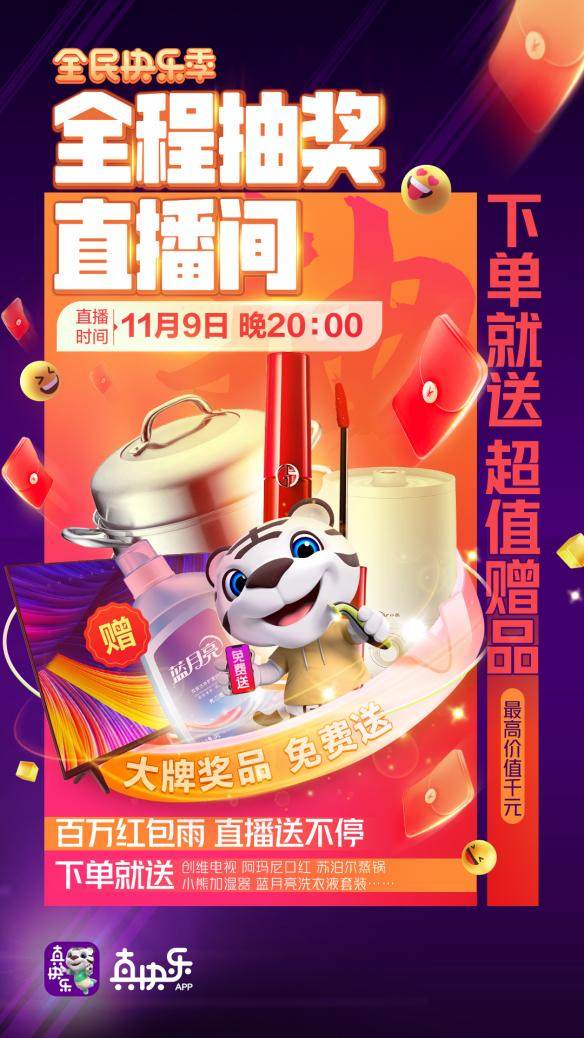 此外,在双11大促直播间,下单即可抽盲盒大奖,包括创维电视、阿玛尼口红、苏泊尔蒸锅、小熊加湿器等全部免费送!11月9日晚8点,锁定“真快乐”直播间,低价好物统统拿回家!同一时间段,“真快乐”抖音号也将惊喜直播,好礼加倍,双平台启动,带来双倍惊喜!