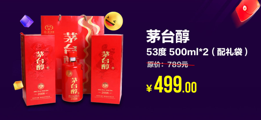 人生得意须尽欢,莫使金樽空对月!酒文化传承千年,可以解忧,可以人情,可以倾心……人生最美好的时光之一莫过于微醺到断片之间。双11狂欢大促, “真快乐”带来了茅台醇2008 53°酱香型白酒500ml,6瓶整箱装仅需499;五粮液盛世佳酿好事成双 52度浓香型白酒 500m*2瓶不止五折;2瓶拉菲珍酿波尔多红葡萄酒+飞天茅台53度酱香型套装原价6568,现价仅需3399,此外,还有白水杜康、洋河52度海之蓝等大牌名酒持续低价,等你来囤!