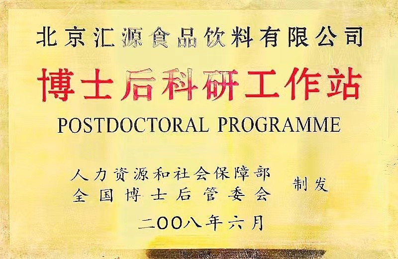 基于在科研领域的持续投入和日积月累的强大实力,2008年,汇源被批准设立国家级企业博士后科研工作站(以下简称汇源博士后工作站)。该工作站与中国农业大学博士后科研流动站联合培养博士后,主要涉及的学科为食品科学与工程、农产品贮藏与加工两大领域。同时,该工作站还可共享汇源集团的北京市企业技术中心科研平台,用于博士后日常科研工作的开展。十多年来,汇源博士后工作站打造出一支强有力的科研队伍,在完成博士后科研课题的基础上,还完成了多项国家、省级及企业自主课题。