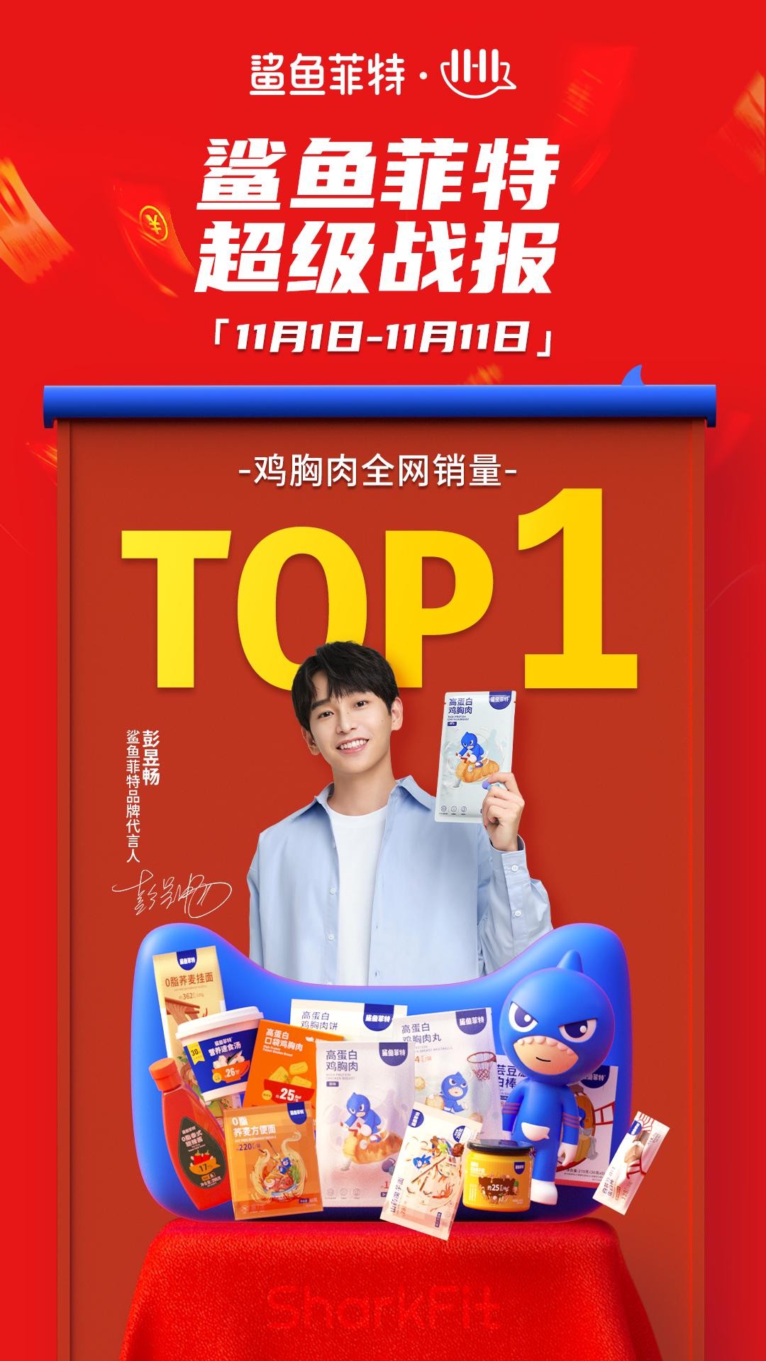 截至2021年11月11日23时59分,鲨鱼菲特全平台销售额同比增长137%,全网连续4年鸡胸肉销量第一,双十一期间鸡胸类目累计销量超227万袋。同时,高蛋白鸡胸肉丸、0脂荞麦挂面、低脂甜玉米粒、低脂果酱、即食糙米饭等多个产品位居全平台单品销售TOP1。