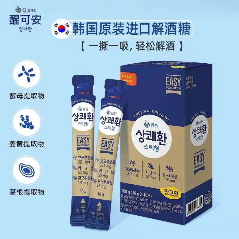 在韩国,只要有酒的地方就一定会有醒可安。醒可安是为那些想在酒后,神清气爽的迎接全新一天的人们而设计的专业解酒品牌!起初,公司推出了利用酵母快速解酒的丸状醒可安。后来韩国三养株式会社又于2019年推出了更为方便、无需水服、开袋即食的条状醒可安解酒果冻,并在其中加入了芒果果汁、酵母提取物、姜黄素、枳实和葛根提取物,让解酒产品更美味,食用更方便快捷。