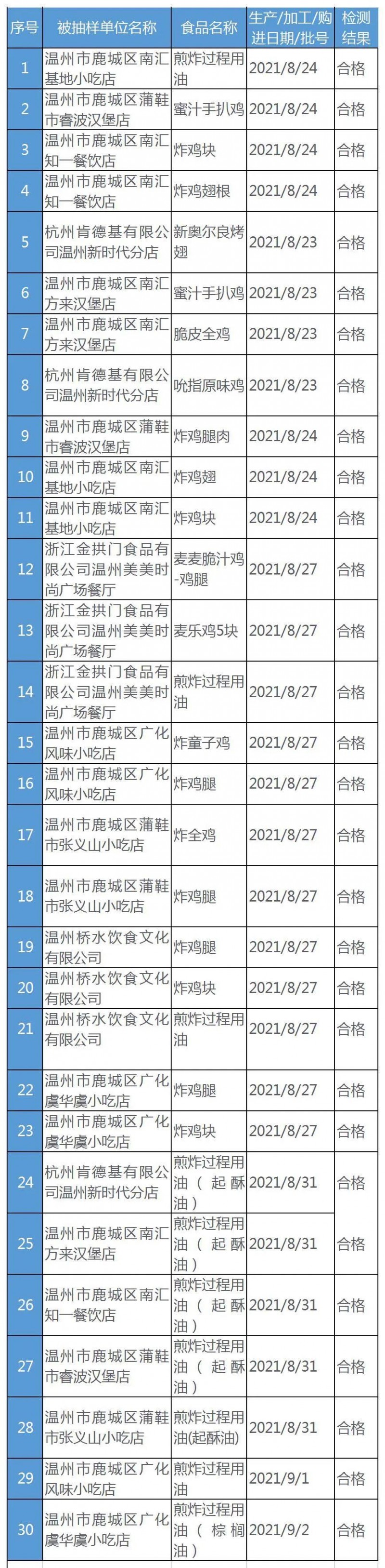 日前,温州市市场监管局开展网络餐饮食品专项,对外卖食品进行针对性抽检。本次共抽检自制肉制品及煎炸过程用油30批次,对其品质指标、重金属、食品添加剂(色素、甜味剂、防腐剂等)、农药残留等项目进行检测,合格率100%。