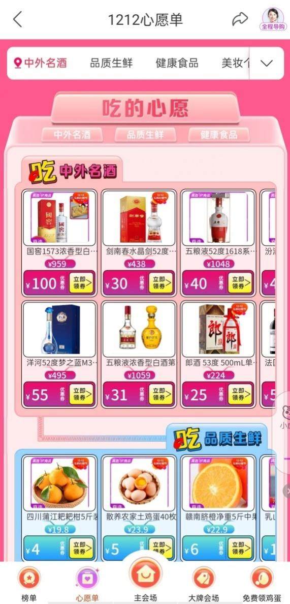 不只是直播间送低价,“真快乐”吃的心愿专场,中外名酒、品质生鲜、健康食品三大板块,海量爆款,活动价基础上再领券,让你的美味心愿,统统低价 “食”现。