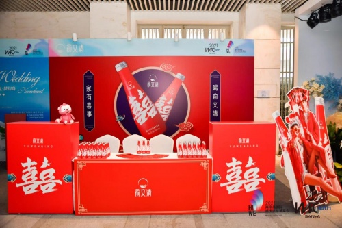 中国婚礼产业博览会即中国婚礼产业高峰论坛于2021年12月6、7日在海南三亚隆重开幕!在一众大牌婚嫁行业的名品名店中,大红喜字国潮风的婚宴饮品俞文清为本次峰会指定的接待饮品,其颇具东方腔调的设计使得它首次亮相就吸引了大批年轻的新人的关注。
