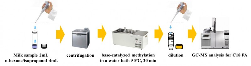 近日,中国农业科学院北京畜牧兽医研究所奶产品质量与风险评估科技创新团队成功建立了奶中24种十八碳脂肪酸同分异构体检测新方法,实现了奶中十八碳脂肪酸同分异构体高分辨率、高灵敏度同步检测,为奶中脂肪酸合成机理以及脂肪酸功能研究提供了技术支撑。相关研究成果在线发表于《分离(Separations)》上。