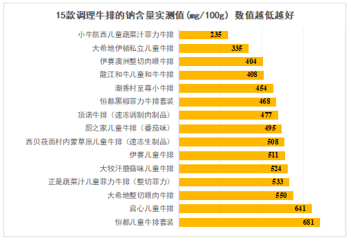 假设以食用每份牛排(100g为一份)计算,摄入钠含量最高的一款牛排,已超过7-10岁的每日推荐摄入量的一半。