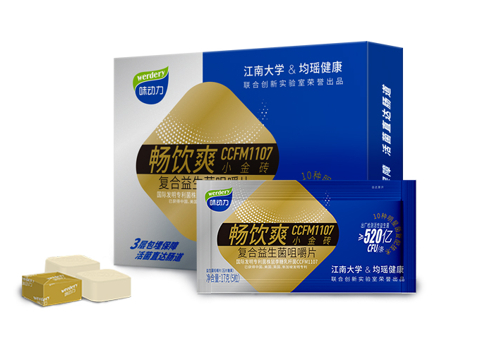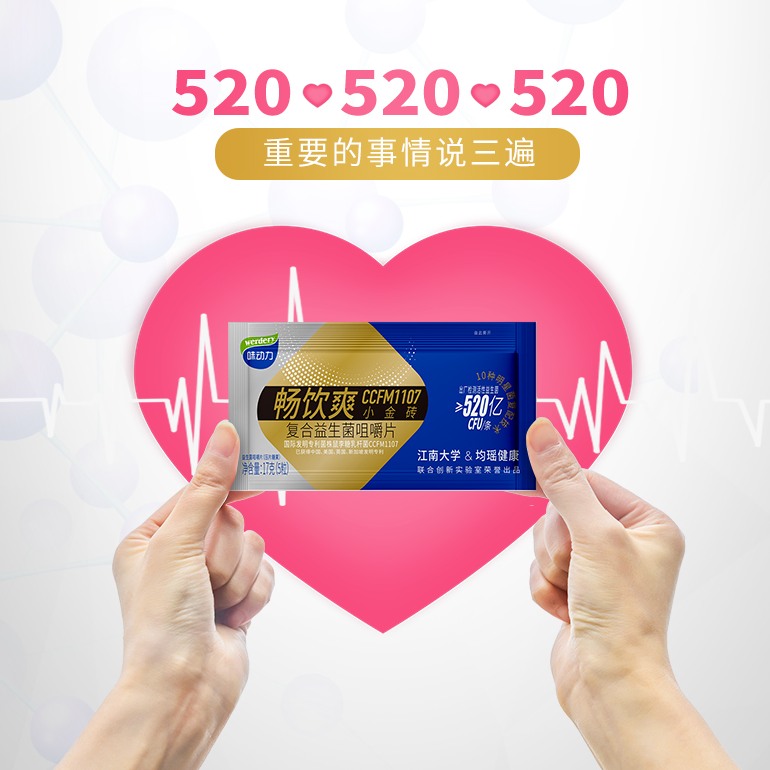 众所周知,活菌数是衡量益生菌产品质量的重要指标之一,是益生菌发挥优良功效的基础。但一般在生产过程中,由于包装过程中设备影响、生产过程中环境的温湿度影响、辅料中的水分活度影响、混料过程中摩擦损失及与氧气接触损失等因素影响,益生菌产品生产时添加的活菌数,到最终出厂的时候只剩下一半甚至一半都不到。而均瑶味动力畅饮爽复合益生菌咀嚼片,出厂检测活性益生菌数高达520亿CFU/条,更能发挥其优良功效!