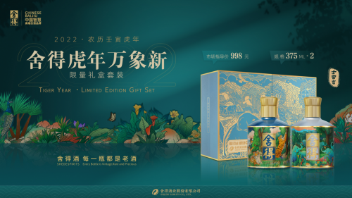越创意,越有心意。舍得虎年万象新礼盒生动勾勒了一幅虎象重回大自然嬉戏的美好画卷,整体清新典雅,风格鲜明,既是对舍得酒业坚守的“生态酿酒”理念的传递,也容易唤起人们对生态保护的情感共鸣。据了解,该款产品取“虎年万象新”的美好寓意,瓶身标有专属收藏编码,宜送礼,宜收藏。