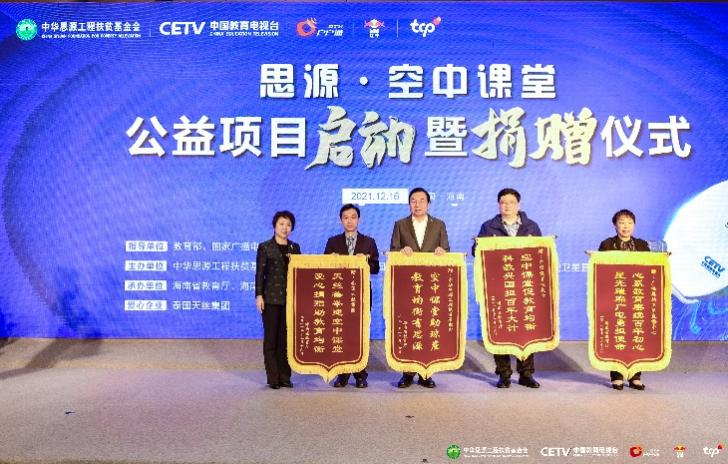 海南省教育厅向“思源工程”、中国教育电视台、国家广播电视总局广播电视卫星直播管理中心、泰国天丝集团回赠锦旗