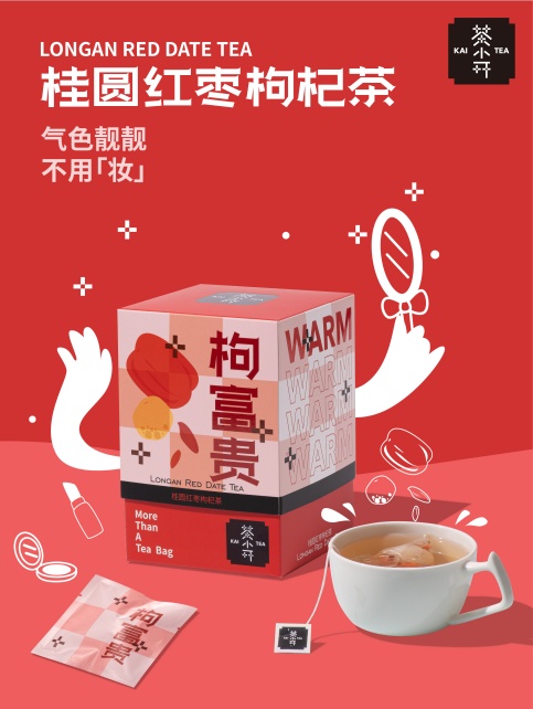 “枸富贵”——桂圆红枣枸杞茶更是深受众多女性用户的青睐。茶小开精心配比桂圆、红枣和枸杞三味天然食物,不添加糖精、香精,满足味蕾的同时,无需担心发胖。滋养气色,低卡又健康;桂圆甘醇,枣香浓郁,回味悠长,每一口都能带来满足感和幸福感。