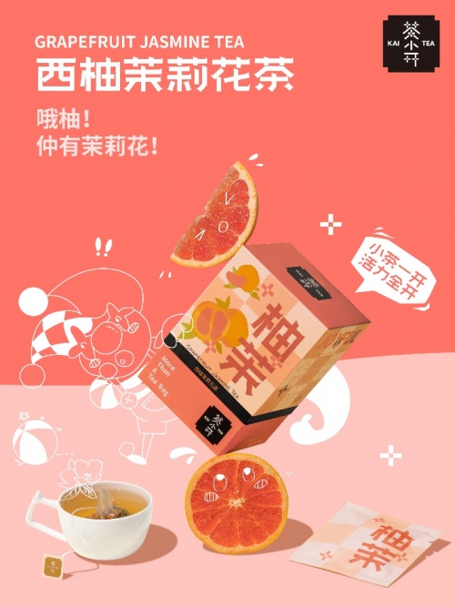 茶小开带来的每一款产品都独具特色。水果茶系列主打款的“柚茉”——西柚茉莉花茶,选用优质毛峰作茶坯,以中国茉莉之乡——广西横县双瓣茉莉层层窨制。历经窨花、通花、续窨、起花、烘焙、冷却、转窨、提花、匀摊……方得一杯馥郁茶底。更搭配红西柚,加入清甜苹果和鲜爽菠萝干,果香自然,口感清爽。一杯入口,果香夹杂雨花香协调持久、口感顺甜。年轻消费者在品味醇正茶汤的同时,能感受到沁人清甜,从中收获满满的元气,尤其适合办公室下午茶,是职场人士不可或缺的一款茶饮。
