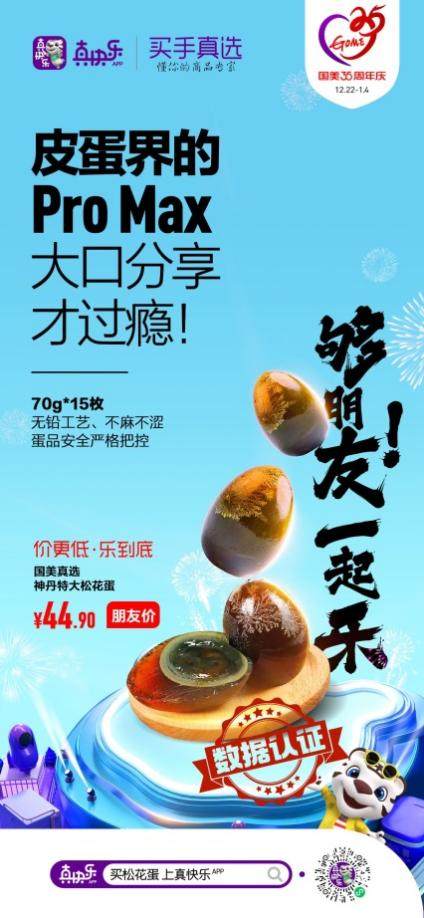 好友聚会!大口分享才过瘾!作为餐桌上的一道开胃菜,国美真选神丹特大松花鸭皮蛋礼盒,70g*15枚,号称皮蛋界的Pro Max,朋友价每盒44.9元。“真快乐”真选买手为什么要选择神丹?首先,神丹牵头制定了《皮蛋》国家标准,全产业链,蛋品安全严格管控。它精选特大鸭蛋,蛋黄比例大,蛋体完整圆润。而且,松花皮蛋制作技艺被列入“湖北省非物质文化遗产”。
