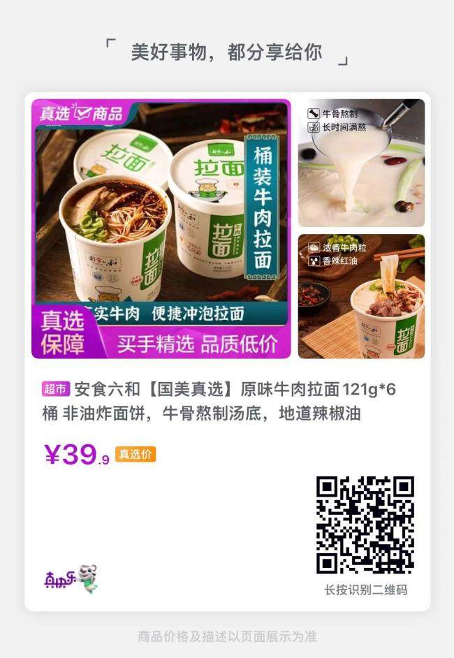 在寒冷的冬天,早晨嗦一碗热腾腾的面足以横扫所有寒意,“真快乐”APP上的安食六和原味牛肉拉面你值得拥有。它是原味正宗牛肉拉面,奢享大块牛肉,汤底浓郁,麻辣鲜香,还原门店最真味道,用开水简单冲泡,就吃出冬日满满幸福感。
