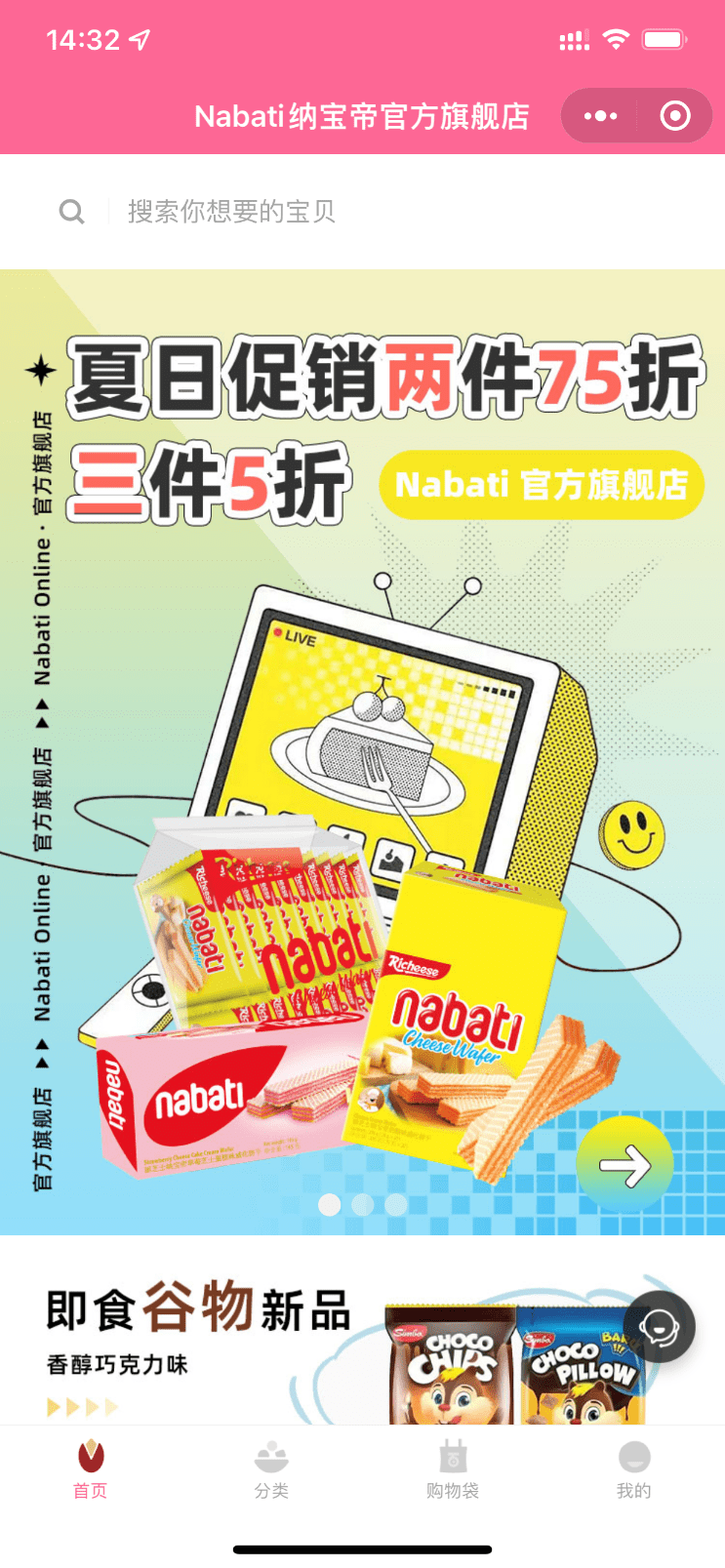 nabati是全球最大的威化饼干生产商,于1985年成立于印度尼西亚万隆,自2009年起,nabati连续9年获得印尼“最佳芝士威化品牌”称号,凭借独特的口感和过硬的品质,nabati畅销全球五大洲。2020年,受疫情影响,为了突破线下销售瓶颈,开拓市场新增量,nabati携手爱点击,旨在借助腾讯生态的优势,挖掘品牌私域流量的长效价值。
